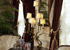 The damask upholstery is a soft compliment to the luxuriant fabrics of the window treatments in this living/music room.