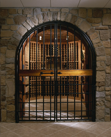 custom mahogany and glass door that open up to a custom designed wine room with
