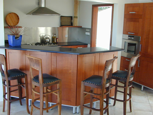 with the addition of a bar for socializing and casual dining. The sleek