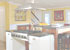 This vibrant environment creates a welcoming spot for gathering family and friends. Large, comfy sofas covered in a soft chenille provide a space to cozy up in front of the beautiful fireplace (which sparkles with small mosaic tile accents) or to kick back and relax in front of the wall mounted plasma TV. Custom built-ins are the perfect solution for storage and accessorizing, but more importantly add a detailed focal point to the room.