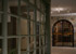 A wall of true divided square windows looks into the media room opening the space up to the bar area.