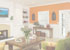 A kitchen / sitting room area in this Jersey Shore home provides an open kitchen plan with an eclectic flair. Transitional style and modern appliances meet farmhouse design in the custom cabinetry while the sleek teak furniture brings an island flavor to the home. Warm wood tones play off of the lively colors of the fabrics and finishes. A pop of color in artwork finishes the look of the space.